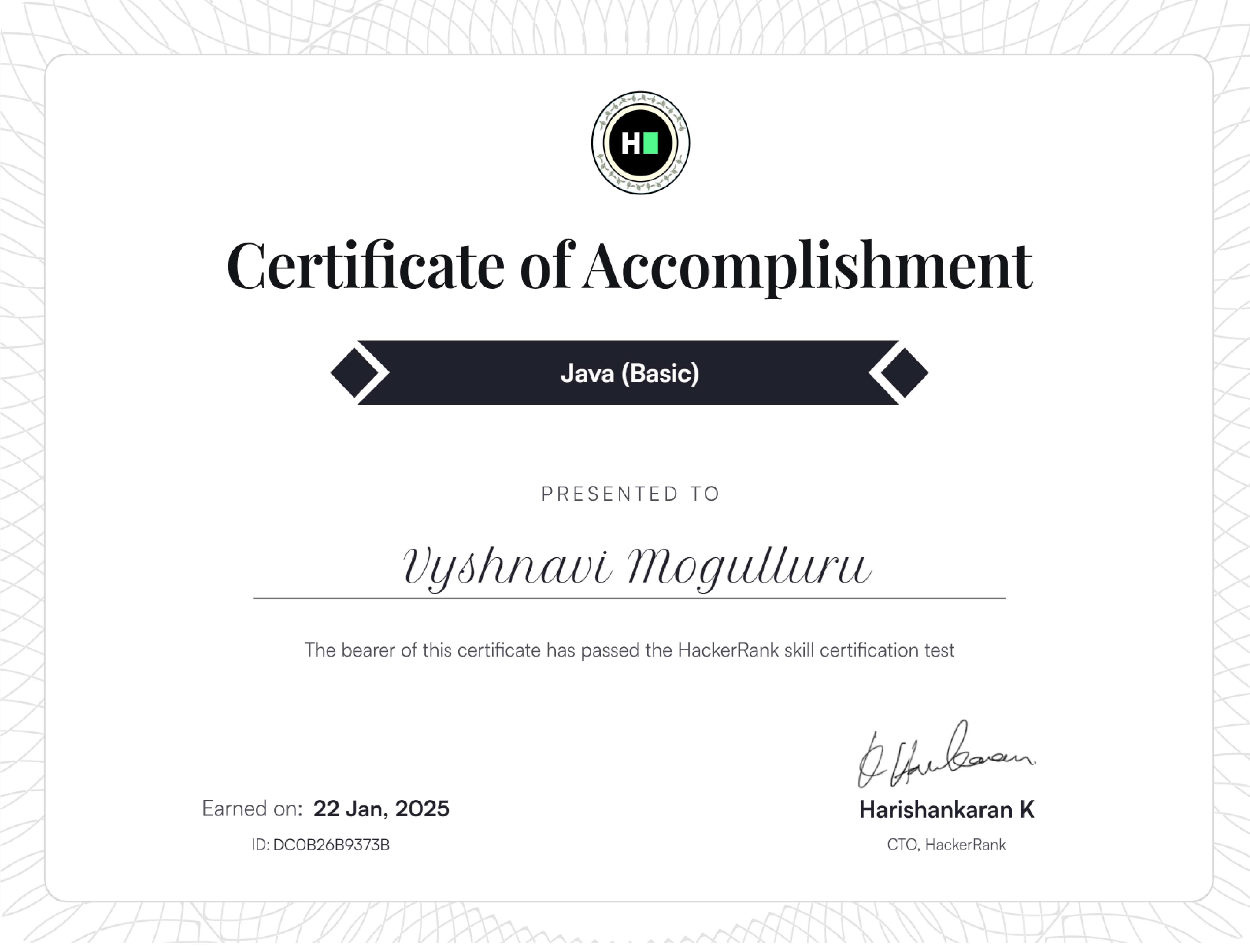 Completed challenges in Java, Problem Solving, and SQL. Demonstrated proficiency in multiple programming domains.
